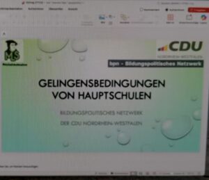 Am 27. November nahmen wir an einer Videokonferenz mit dem Bildungspolitischen Netzwerk der CDU NRW teil. Im Mittelpunkt stand das Thema „Gelingensbedingungen von Hauptschulen“. Nach einem kurzen Impuls von Frau Thiel berichtete Herr Tümmers, Schulleiter der Martin-Luther-Hauptschule in Hamm, eindrucksvoll aus der Praxis.