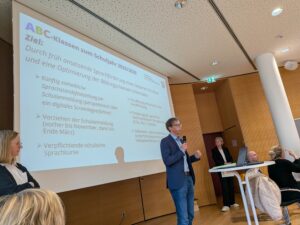 Im Anschluss informierte Herr Schnelle über die geplante Einführung der sogenannten ABC-Klassen. Hintergrund ist, dass etwa 30 % der Kinder erhebliche sprachliche Defizite aufweisen. Herr Schnelle betonte ausdrücklich, dass es sich dabei nicht um ein therapeutisches Angebot handelt, sondern um eine pädagogisch ausgerichtete Sprachförderung. Vorgesehen ist eine Förderung in Kleingruppen von etwa acht Kindern.